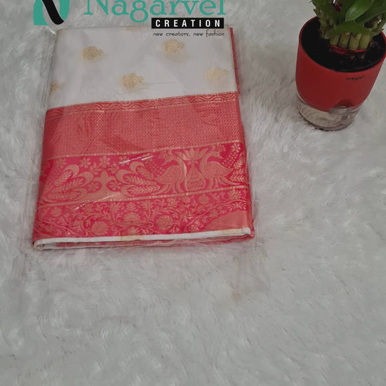 Elegant Cream Banarasi Silk Saree with Rich Pink Zari Border & Blouse