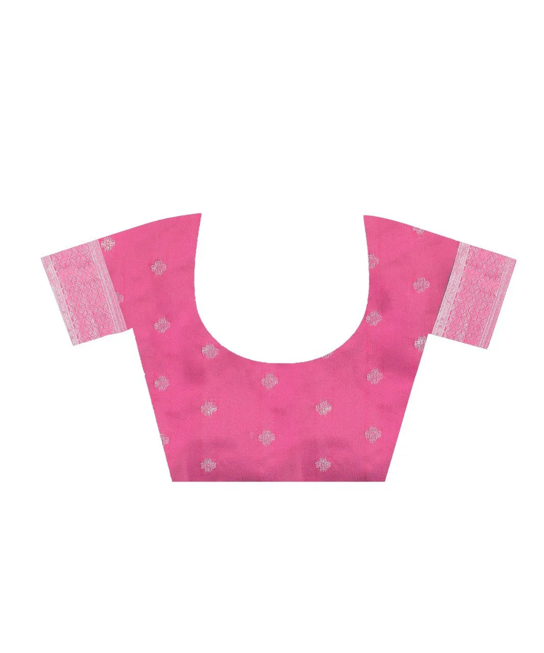 Elegant Cream Banarasi Silk Saree with Rich Pink Zari Border & Blouse