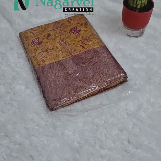Two Tone Mustard Yellow & Green Velvet Look Saree with Golden Lace Border – Party Wear Trending Saree